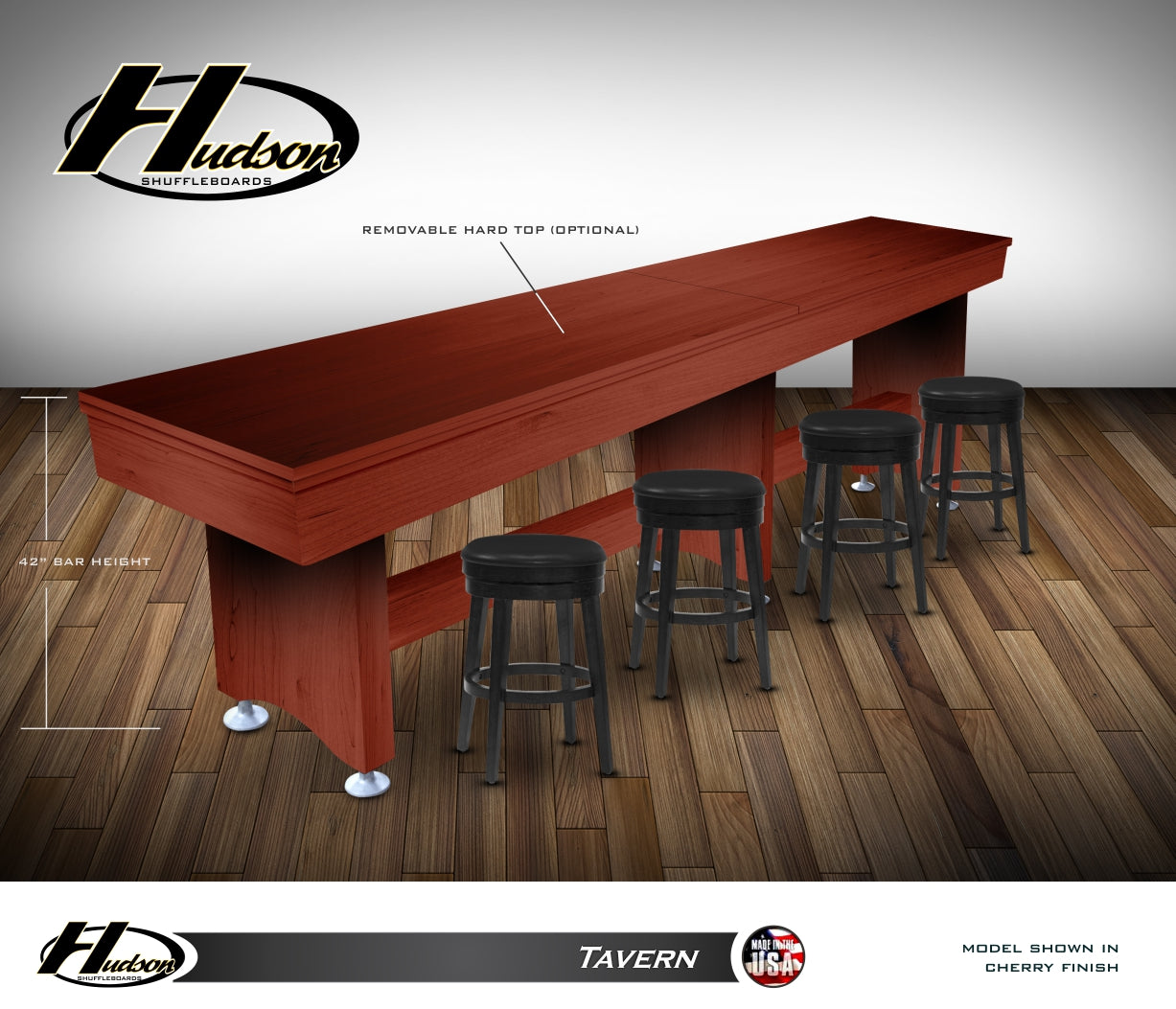 Join the Pros and enjoy playing shuffleboard on a newly designed Tavern Shuffleboard by Hudson Shuffleboards. Available sizes . . .
