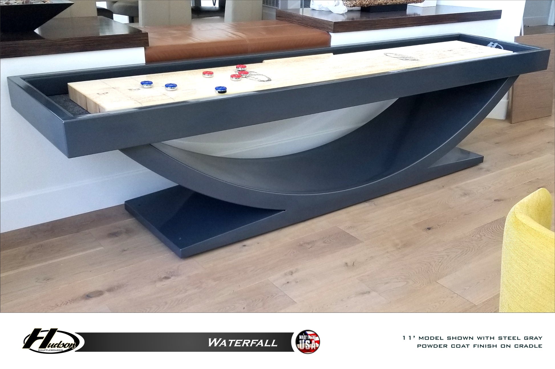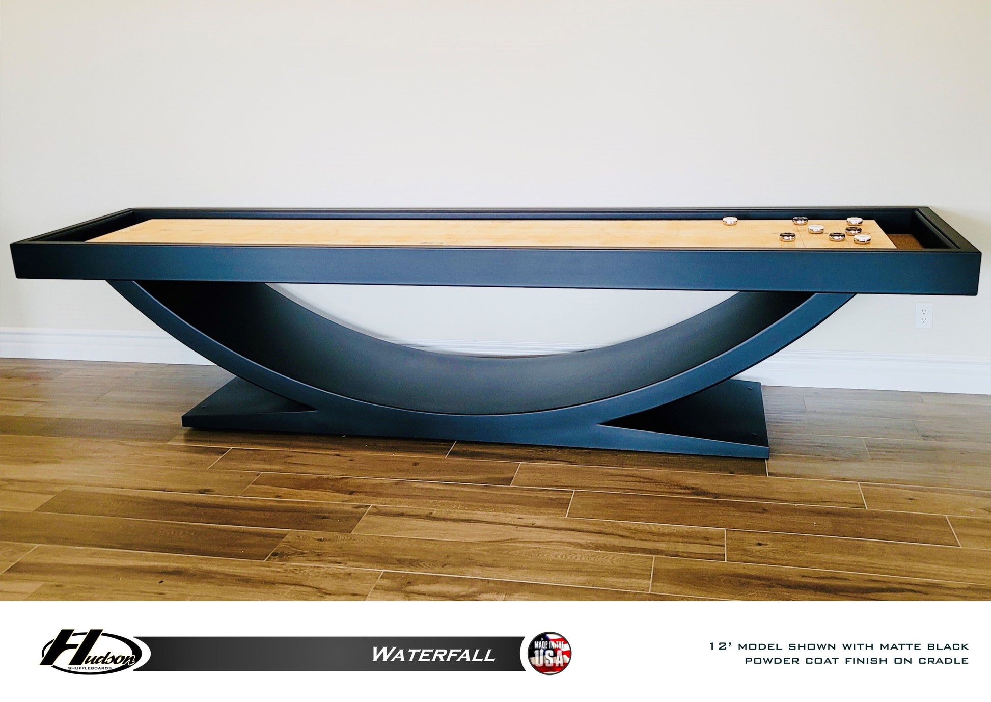 Enjoy a lifetime of memories created while playing on a newly designed Waterfall Shuffleboard by Hudson Shuffleboards. Available sizes are 9', 10', 11', 12', 14', and 16'.