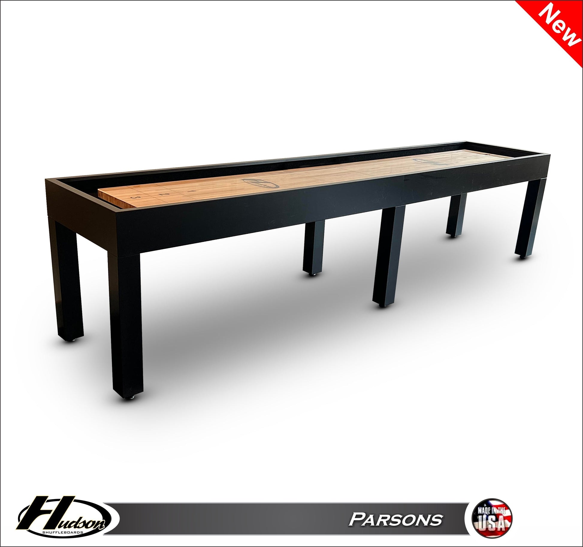 Enjoy playing shuffleboard on a cleanly designed Parsons Shuffleboard by Hudson Shuffleboards. Available sizes are 9, 10', 11', 12', 14', 16', 18', 20', or 22' (tournament size).