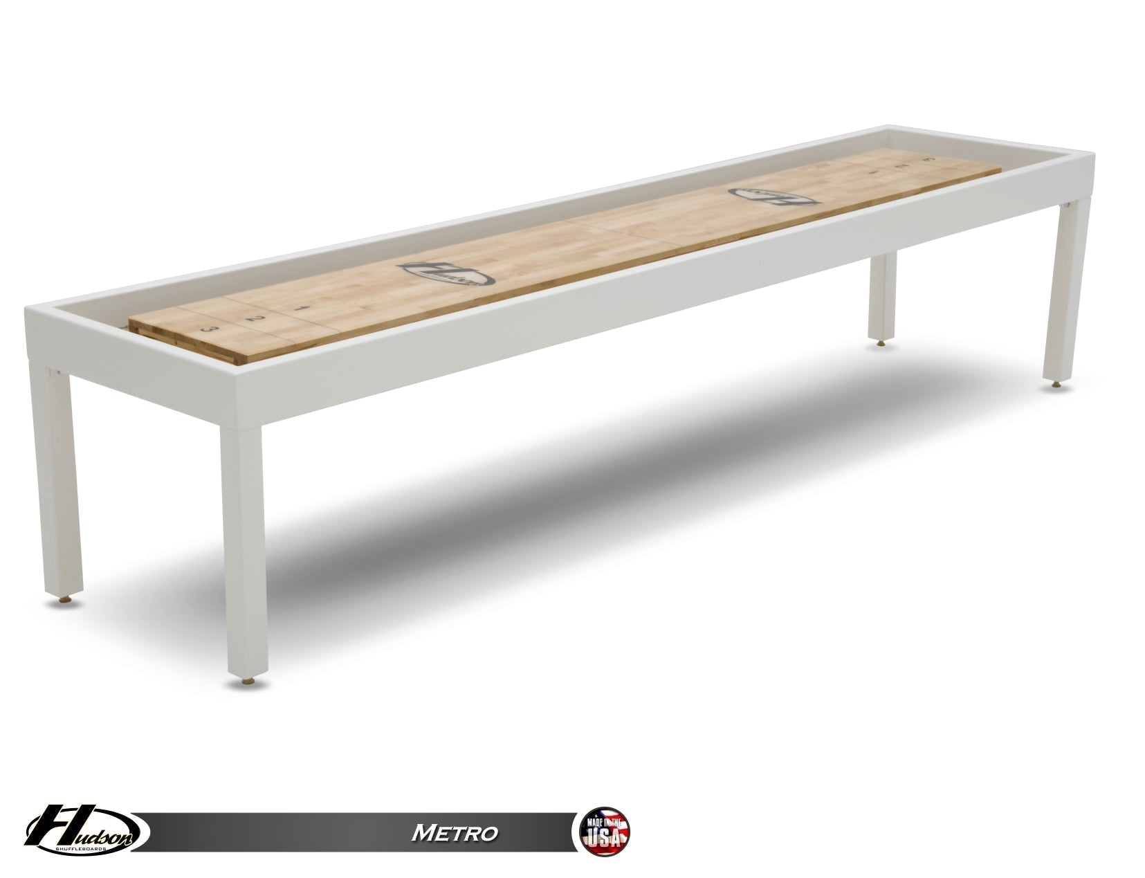 Join the Pros and enjoy playing shuffleboard on a newly designed Metro Shuffleboard by Hudson Shuffleboards. Available sizes are 9, 12', 14', 16', 18', 20', or 22' (tournament size).