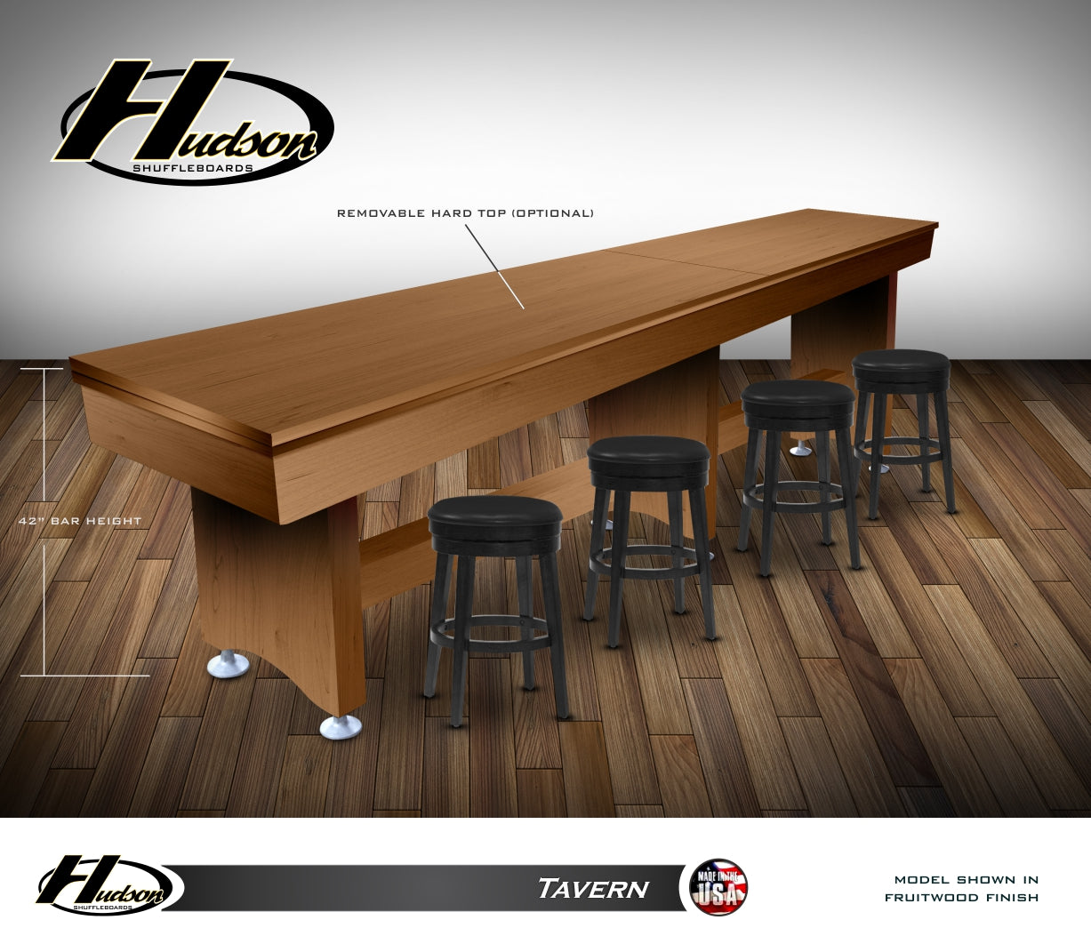 Join the Pros and enjoy playing shuffleboard on a newly designed Tavern Shuffleboard by Hudson Shuffleboards. Available sizes . . .