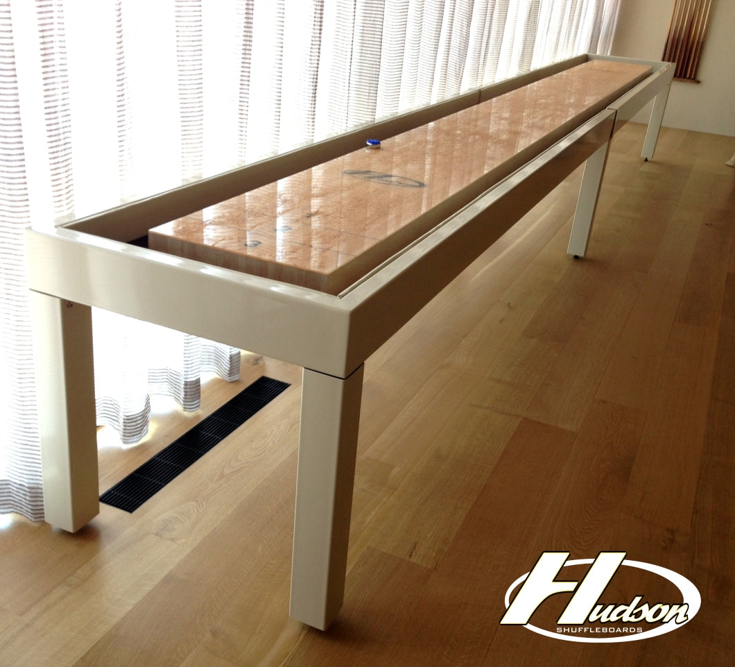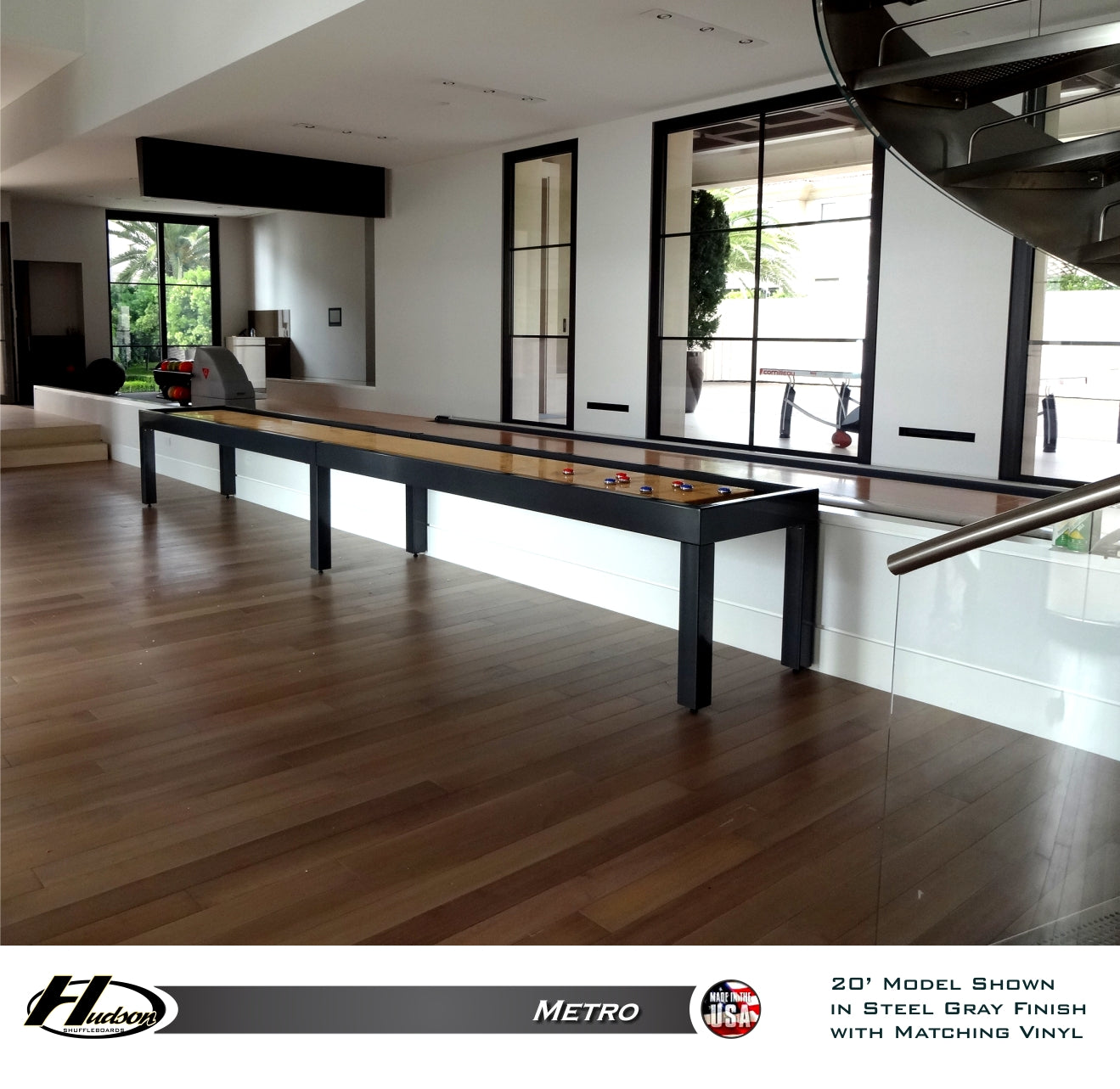 Join the Pros and enjoy playing shuffleboard on a newly designed Metro Shuffleboard by Hudson Shuffleboards. Available sizes are 9, 12', 14', 16', 18', 20', or 22' (tournament size).