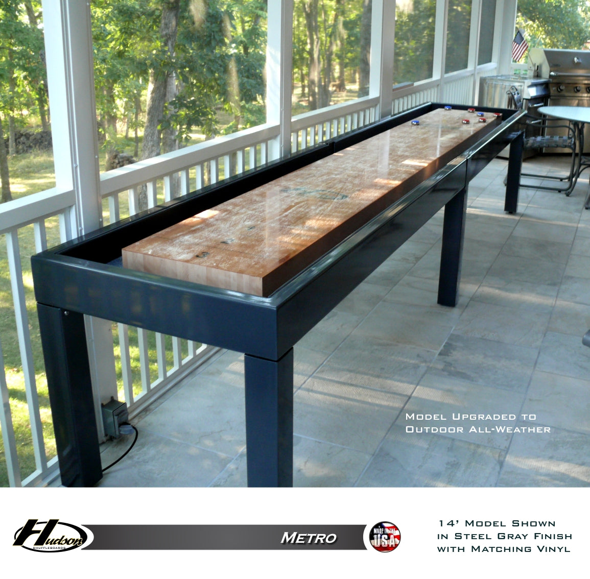 Join the Pros and enjoy playing shuffleboard on a newly designed Metro Shuffleboard by Hudson Shuffleboards. Available sizes are 9, 12', 14', 16', 18', 20', or 22' (tournament size).