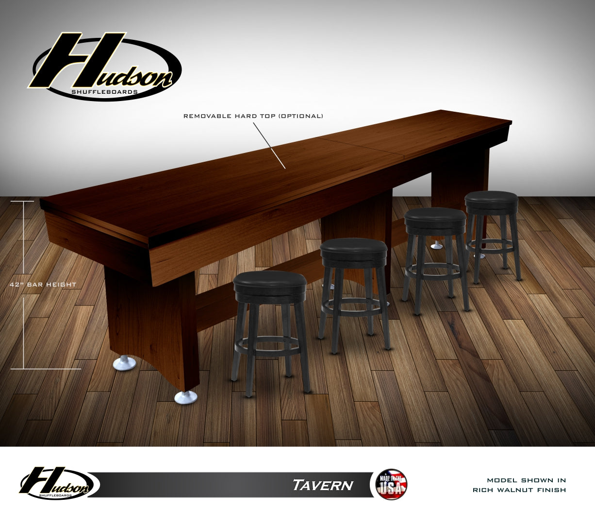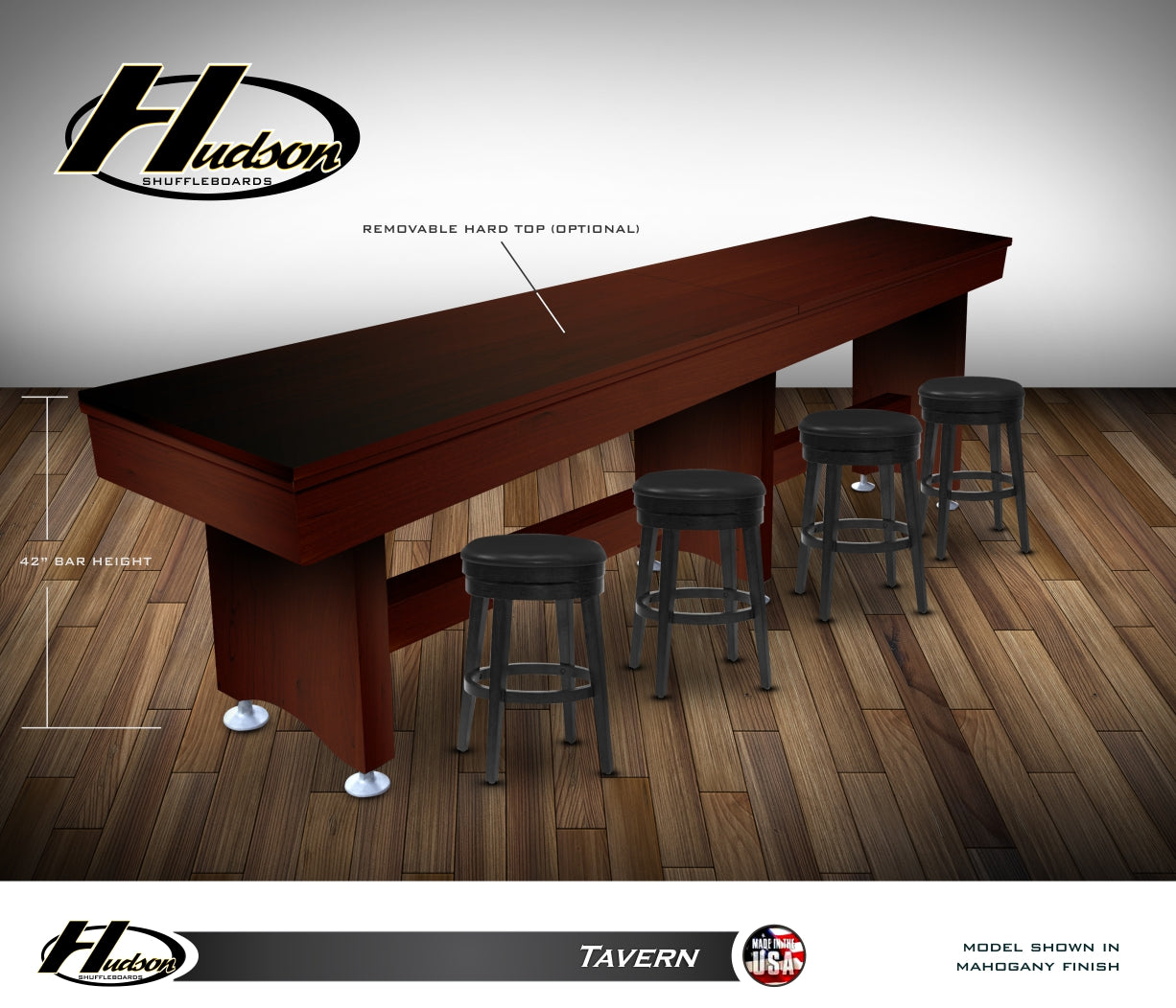 Join the Pros and enjoy playing shuffleboard on a newly designed Tavern Shuffleboard by Hudson Shuffleboards. Available sizes . . .