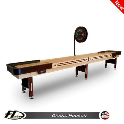 Quality…Affordable…Fun! The newly redesigned Grand Hudson Shuffleboard is a beautiful work of master craftsmanship that features a timeless American look made 100% in the USA. Sparing no costs for quality, the 3” thick playing surface is constructed of select kiln-dried Maple and topped with our Polymer Finish (lifetime warranty). This is the same finish insisted upon by the Professionals in tournament play. And to help keep the playing surface true, climatic adjusters are included.